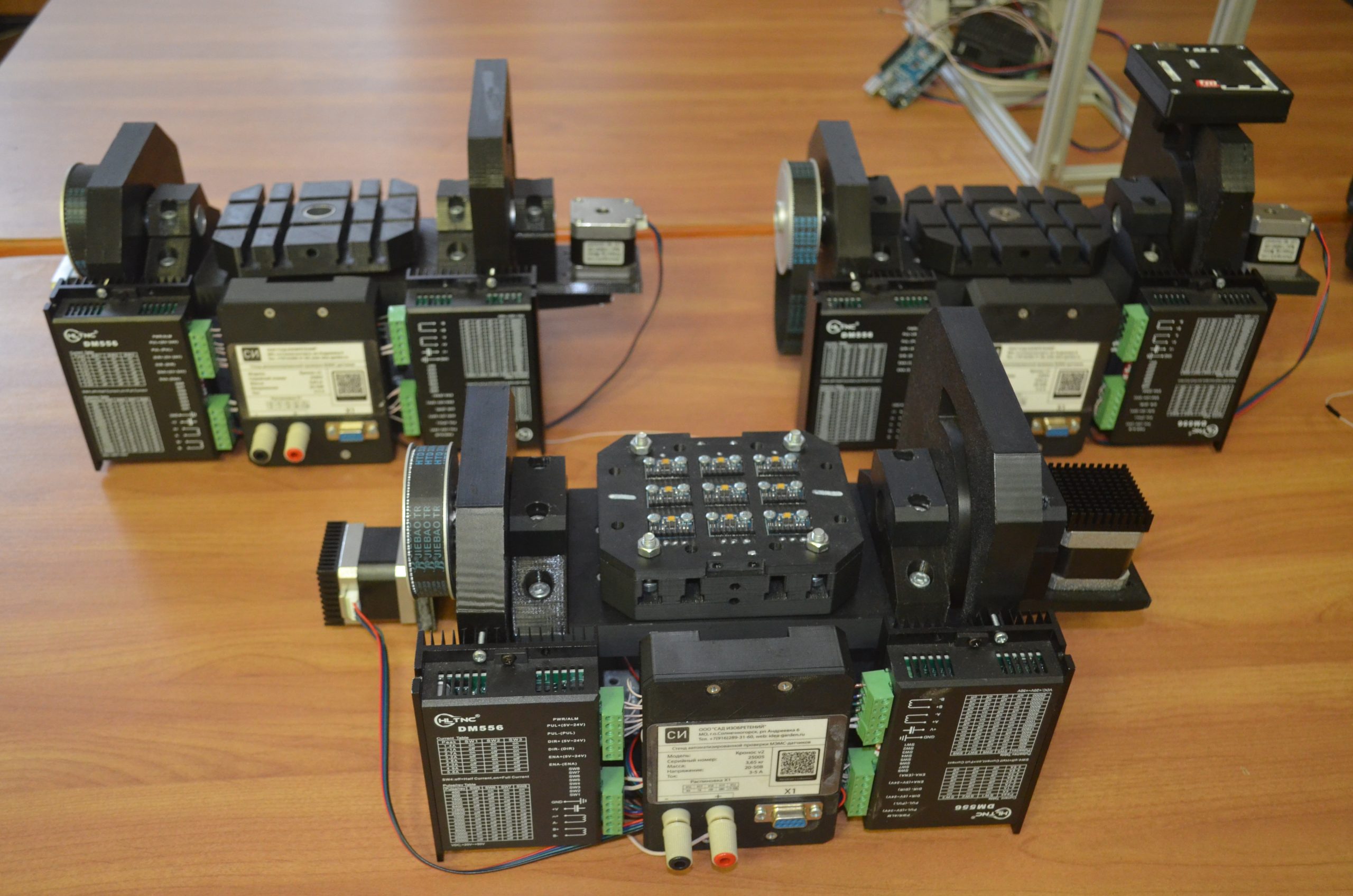 Разработанный нашей командой комплекс автоматических измерений «Кронос» в своем составе имеет 2-х осевой поворотный ЧПУ станок и модуль управления измерениями. Комплекс предназначен для измерения угла наклона (поворота) закрепленной в рабочей зоне оснастке с выводом полученных параметров на ПК (компьютер). Интерфейс работы изделия с компьютером — USB. В составе комплекса, также, поставляется программное обеспечение для выведения результатов проверок и дополнительной настройки изделия. Изделие целесообразно применять для обучения основам взаимодействия с внешними датчиками, такими как: акселерометры, гироскопы, использовать для точного позиционирования и тестирования антенн и приемо-передающих устройств. Стоимость по запросу.